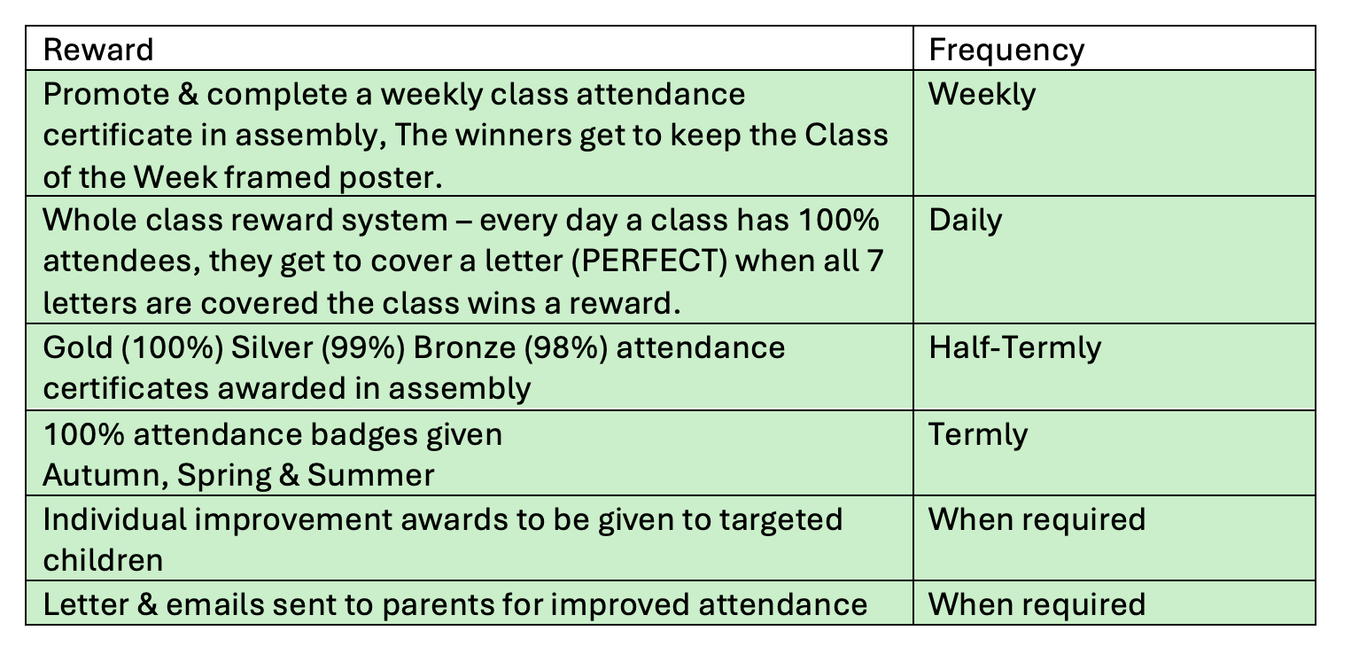 We use a range of rewards at Brambles to promote positive attendance with the children. Please see a selection of these below.