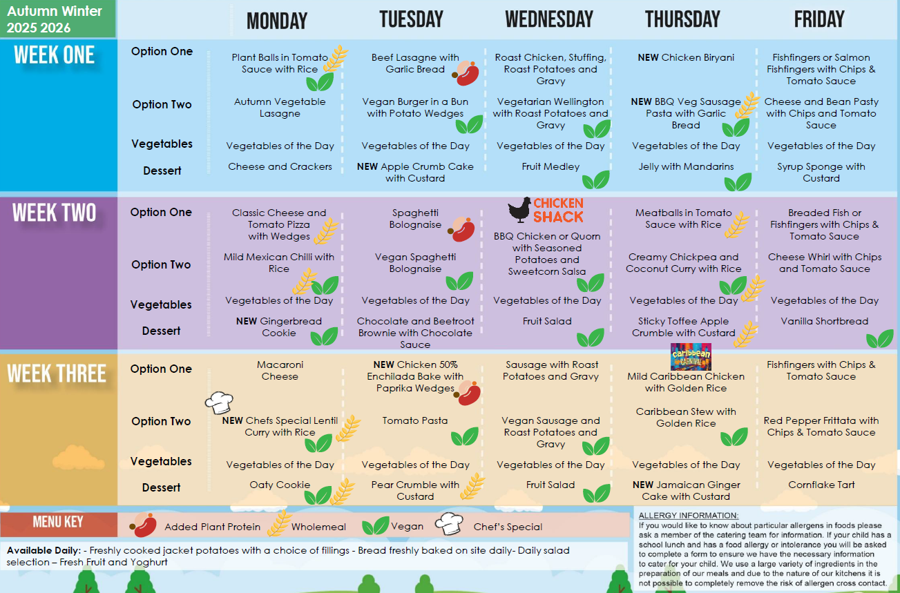 Once your child moves up to KS2 in Year 3 their entitlement to a Universal Free school meal ends and unless your child is entitled to a Free school meal, you will have to pay for school dinners. The current cost (Sept 2025) is £2.60 per day, payable in advance.